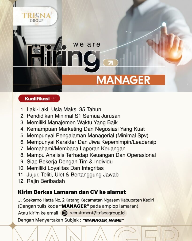 Trisna Group sebuah holding company yang diawali dari satu perusahaan Bergerak dalam bidang oil and gas, hospitality, agrochemical, etc. Atas ijin Allah kini perusahaan berkembang hingga 58 perusahaan. Seiring pertumbuhan perusahaan tentunya kami membutuhkan talent-talent terbaik anak negeri yang mampu bergerak dengan kreatif,inovatif, dan solutif